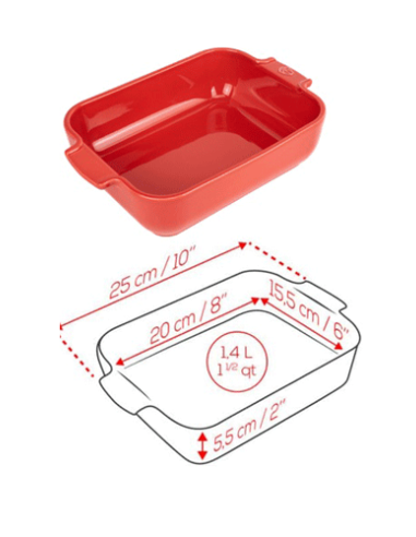 petit par sa taille, 25 cm, ce plat céramique rouge en format rectangle est grand par le talent. Ses rebords hauts optimisent la contenance pour accueillir de généreux gratins ou d'épaisses lasagnes, cuits à coeur. Fabriquée en France dans le respect d'un savoir-faire ancestral, la céramique Peugeot répond aux normes alimentaires et environnementales les plus strictes. Son inertie thermique est excellente et permet de conserver la chaleur jusqu'à 30 minutes après la sortie du four.