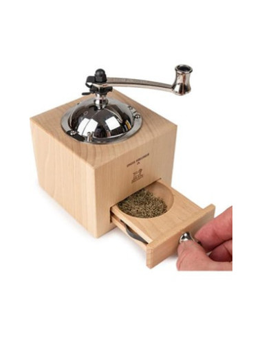 Cette nouvelle teinte de bois naturelle vient s’ajouter aux deux coloris initialement lancés dans la collection, le rouge piment et le chocolat. Protégé par un vernis, cette teinte naturelle met en valeur les nuances du bois, la géométrie de ses veines, les nœuds. Molette crantée de réglage de mouture