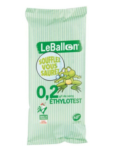 Le modèle d’éthylotest chimique “Le Ballon” produit par CONTRALCO se démarque par sa simplicité déconcertante. On a tous déjà observé ce petit éthylotest dont l’emballage est marqué du slogan de la sécurité routière « Soufflez vous saurez ». Constitué de deux éléments, il est d’un emploi très facile, et se range aisément dans un sac ou un vide-poche. Cet alcootest sans chrome se compose d’un embout de grande taille, permettant le remplissage du ballon sans effort et d’une poche gonflable certifiée NF (norme française). D’une contenance de 1,3l, la poche oblige l’utilisateur à aller chercher en un seul souffle l’air contenu dans ses poumons