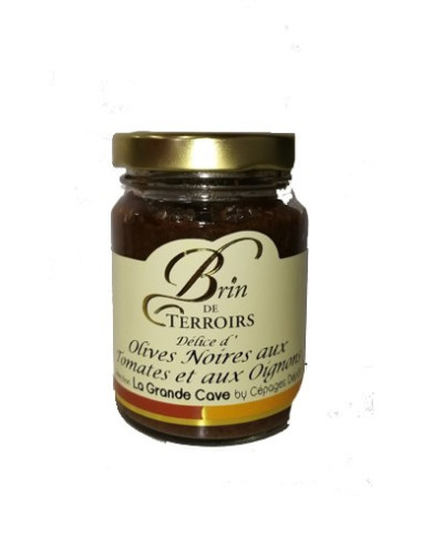 Appellation : Délice Olives noires tomates oignons | Contenance : Poids net 80 gr |