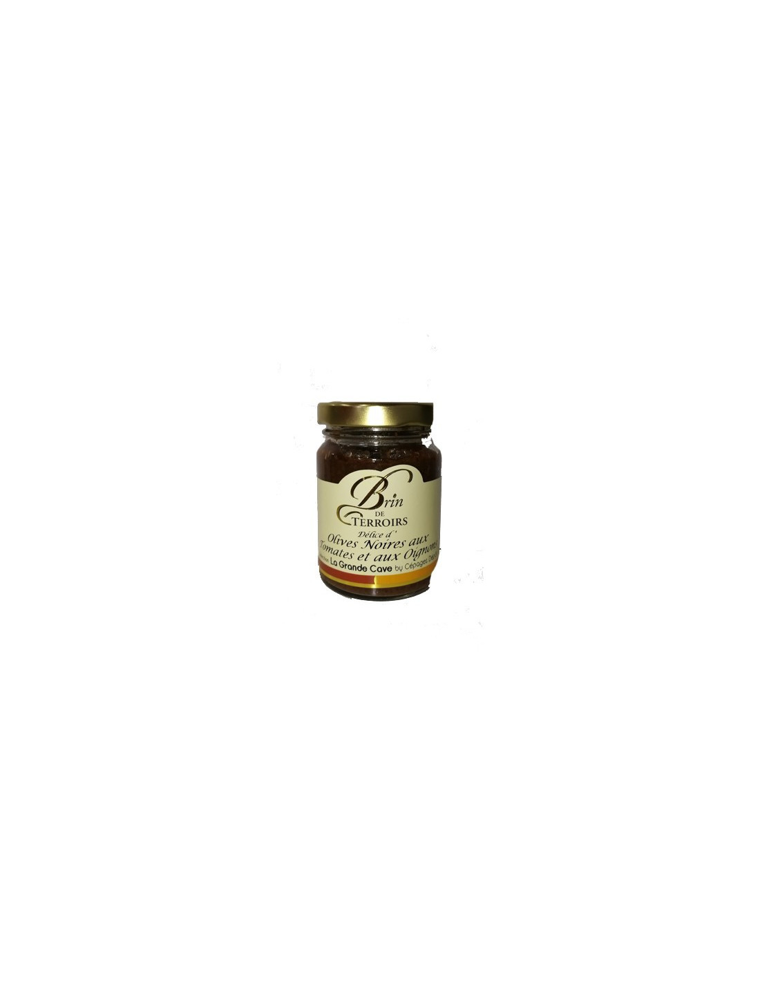 - Olives noires 40%, tomates (tomates, jus de tomates, sel, acidifiant : acide citrique) 33%, oignons 13%, vin huile d'olive, moutarde, câpres au vinaigre, laurier et Thym.
